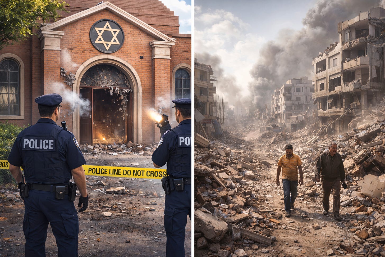 الهجوم على كنيس يهودي، حتى لو كان المقصود منه في البداية أن يكون رمزياً، يشير إلى رغبة في بث الخوف وإلحاق الضرر باليهود في أماكن أخرى. الهجوم على كنيس في الشتات، على وجه الخصوص، هو الصورة المعكوسة لادعاء إسرائيل أنها تمثل كل يهودي، وبالتالي فهو أمر غبي للغاية. قد يشجع الناس على الهجرة إلى الأرض الواقعة بين البحر والنهر، وهو عكس ما يخدم المصلحة الفلسطينية.